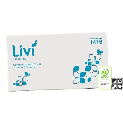 Livi Essentials Hand Towel Compact 1 Ply 150 Sheet Box Of 16