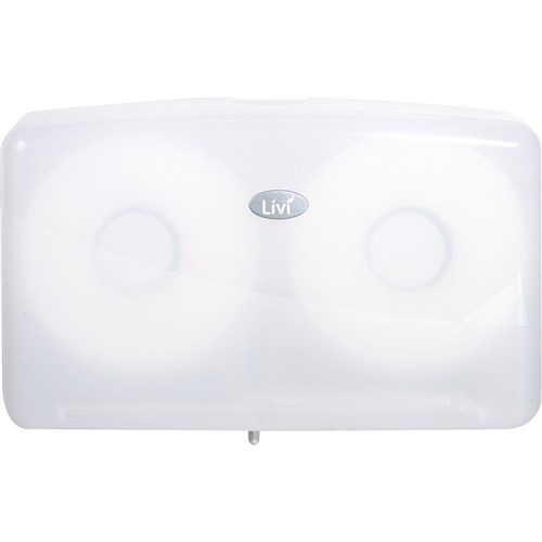 Allows for optimal capacity with one jumbo toilet roll on each side. This reduces the frequency of changing toilet paper and allows for longer lasting use in public and office environments. Dual lock: Open/Close, push-to-open access for servicing staff. Loaded slide prevents reserve roll access until the first roll is used. Ideal for heavy traffic washrooms . Suits Livi toilet tissues 1101, 7005, 7006 & 1100E. Dimensions: 508L x 137W x 325mmH.