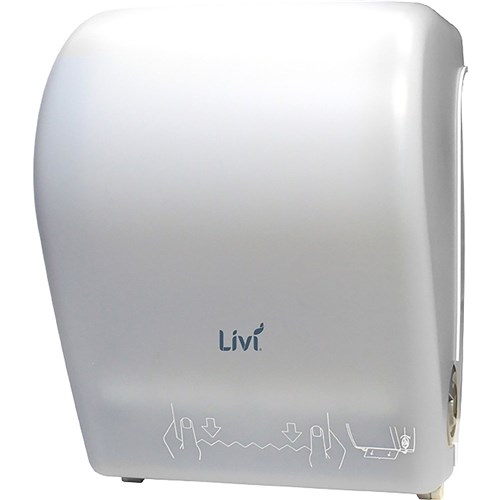 Can hold up to 200m roll. Emergency feed assists in paper advance if needed. Offers convenience, quality and touch free with one sheet a time controlled dispensing with auto cut roll towels. Economical and practical with controlled dispensing. Ideal for high capacity washrooms. Hygienic: cut and dispense. Easy to load functionality, up to 25% less towel usage. Suits Livi hand towel 1204. Dimensions: 280W x 235D x 380mmH.