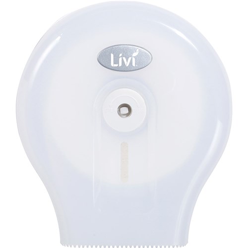 Offering a sleek design and reliable quality for a great price. Check-for-refill window minimises run-outs. Hygienic full cover design for improved protection. Teeth for sheet tear-off. Lockable to avoid pilferage. Ideal for all bathroom types and is suitable for all standard sized toilet rolls. Suits Livi toilet tissues 1001, 1002, 3005, 3007, 7004, 7007, 7008 and 1008E. Dimensions: 180W x 135D x 200mmH.