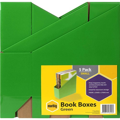 Marbig Book Boxes Small 90W x 250D x 270mmH Green Pack Of 5