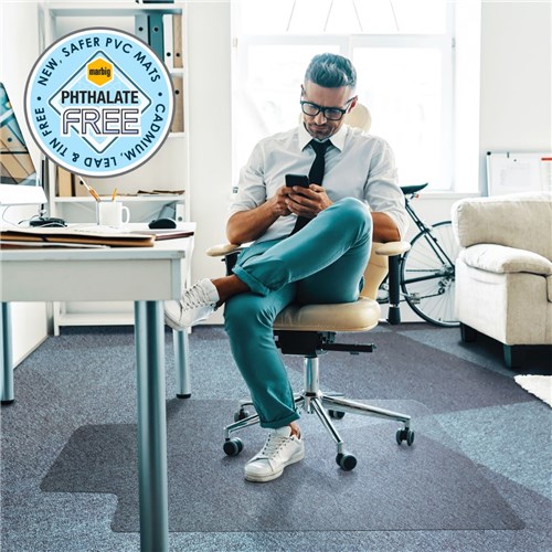 Marbig Deluxe Chair Mat Notched Based For Medium Pile Carpet 114 x 134cm Clear