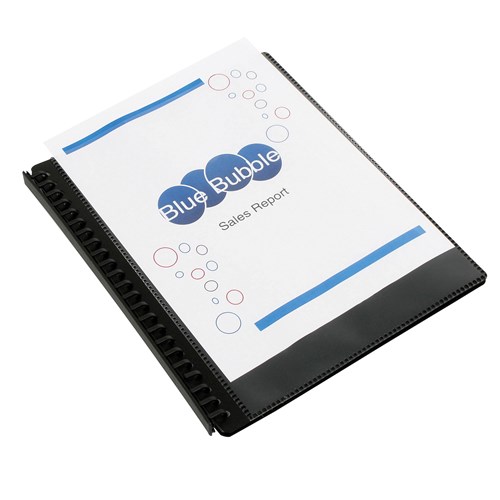 Clear insert cover allowing you to customise your presentation. Refillable- add, remove and swap pages as required by releasing the spiral spine inside the book. Includes 20 clear, durable pockets to protect documents. Made from environmentally friendly, durable polypropylene material.