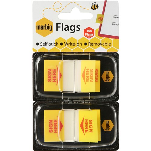 Marbig Flags Sign Here Tip Twin Pack 25x44mm 50 Flags Per Dispenser Yellow/Red Pack Of 2