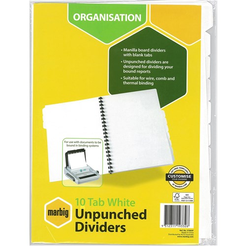 Marbig Manilla Indices & Dividers A4 10 Tab Unpunched White