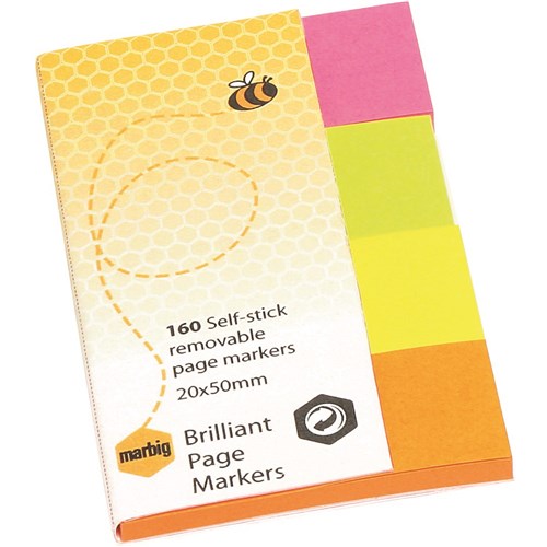 Marbig Page Markers 20x50mm Brilliant Assorted 40 Sheet Pads Pack Of 4