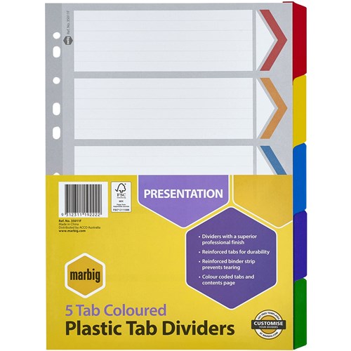 Marbig Plastic Indices & Dividers A4 Reinforced 5 Tab Multi Colour