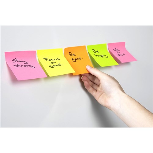 High quality, bright neon repositionable notes that restick again and again. 80 sheets per pad. Bright neon ensures your messages always stand out and adds urgency to your notes. Assorted pack of 5 includes 2 x pink, 1 x green, 1 x yellow and 1 x orange. Perfect for use in the home or office, so you will never forget those little details.
