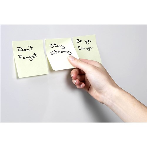 Economical self-stick, removable notes. 100 sheets per pad. Perfect for use in the home or office, so you will never forget those little details. Bright yellow to ensure your messages always stand out.
