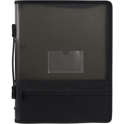 Marbig Zipper Binder With Extra Storage A4 2 O-Ring 25mm Smoke