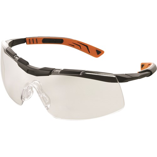 Maxisafe 5x6 Safety Glasses Anti Fog Clear Lens Black / Orange Frame