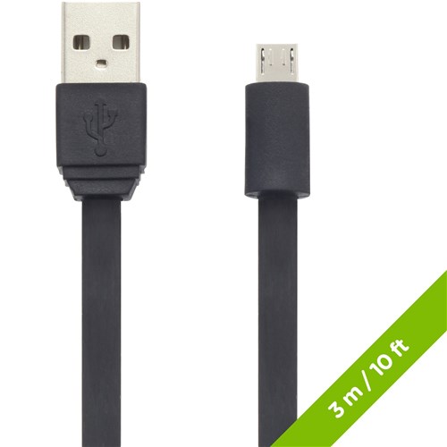 Moki King Size MicroUSB SynCharge Cable 3 Metre Black