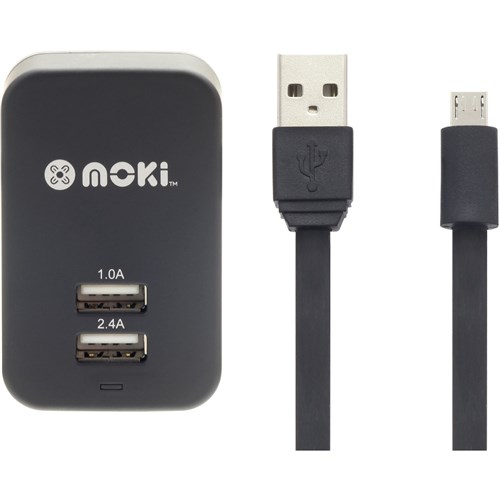 Moki MicroUSB SynCharge 150cm Cable + Wall Charger Black