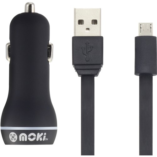 Moki MicroUSB SynCharge 90cm Cable + Car Charger Black