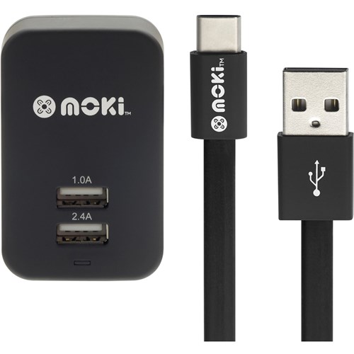 Moki Type-C SynCharge 150cm Cable + Wall Charger Black