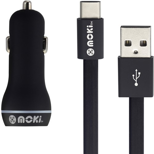 Moki Type-C SynCharge 90cm Cable + Car Charger Black