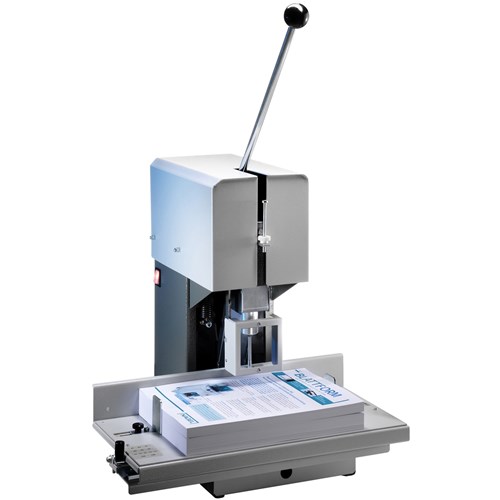 Desk top electric Paper Drill. Presett hole patterns 2,3 & 4 hole. Drilling capacity of 50mm 500 sheets. Drill sizes 2 to 9mm.