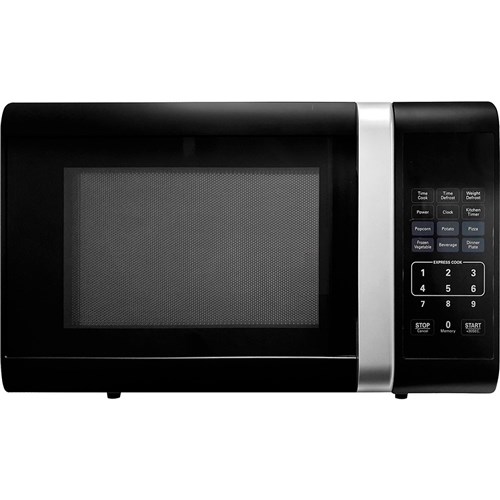 Easy clean black conventional 23L microwave with LED display and grey interior, speedy one touch cooking and incremental power settings. Digital LED display with clock function. One touch cooking. Pull handle door opening. Power: 800 W. Dimensions: 485L x 392W x 293mmH. Turntable diameter: 270 mm. AUS/NZ Electrical Safety Standards Approved. 2 Year Manufacturer's Warranty.