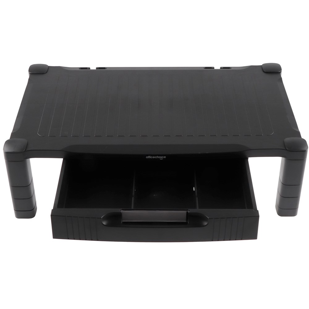 Office Choice Extra Wide Monitor Stand With Drawer 560W x 336D x 103-163mmH Black