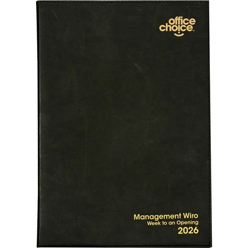 Flexible PVC cover management wiro diary, stitched edges and deluxe pocket inside the cover. Twin wiro allows you to lay the diary flat on your desk. Includes Australian and New Zealand holidays and school terms. Reference calendars. World holidays. 1 hour appointment times 8:00am - 7:00pm. Conversion table. International and National dialling codes. Weights and measures table. International paper sizes. Staff leave. Monthly expenses. Current planner.