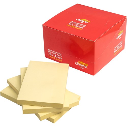 Office Choice Repositionable Sticky Notes 100 Sheets Yellow 76 x 127mm Pack of 12