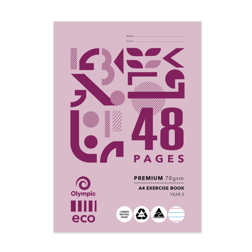 Olympic ECO EY24P Exercise Book QLD Year 2 A4 18mm Ruled 48 Page
