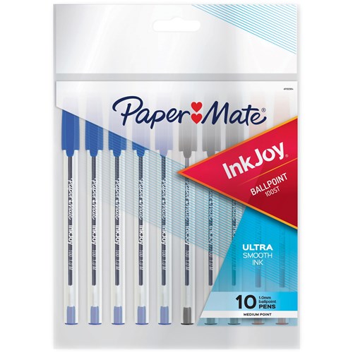 • Paper Mate InkJoy 100ST ballpoint pens have a smooth, fast-starting writing system that spreads ink easily without drag.