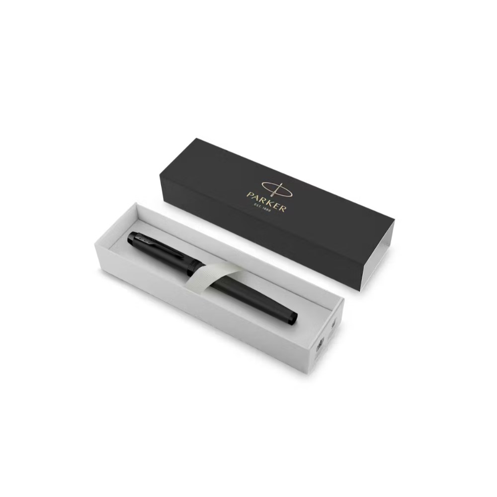 Smart, polished and established designs meets a modern, tapered silhouette. Matte black lacquer finish complemented with black trims and the signature Parker arrow clip. Durable stainless steel nib delivers a writing experience that?s both reliable and personal. A comfortable and ergonomic shape. Perfect for students and professionals. Presented in a Parker gift box with a blue Quink ink cartridge. 2 Year Manufacturer's Warranty.