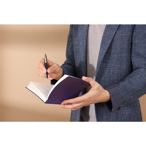 Streamlined style with clean lines for a fresh take on the iconic Parker Jotter design. Stainless steel barrel with blue finish accented by high-shine trims and an arrowhead clip. Signature retractable design opens and closes with a satisfying click. Fitted with Quinkflow ballpoint refill for optimal ink flow and a smooth writing experience. Blue ink, medium tip. Also accepts Parker gel refills. Packaged in a distinctive Parker gift box. 2 Year Manufacturer's Warranty.