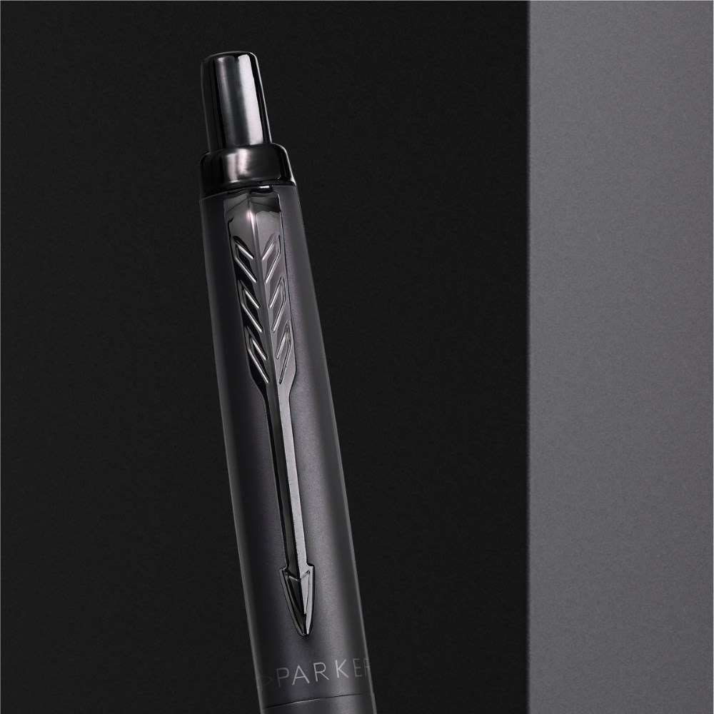 The iconic Jotter pen in a larger body, perfect for those who enjoy the comfort of a bigger pen. Features a strikingly modern matte black cap and barrel, paired with matching shiny signature arrow clip. Streamlined and lightweight with a retractable design that opens with a satisfying click. Quinkflow ink technology for smoother, cleaner, and more consistent writing performance. Packaged in a distinctive Parker gift box. 2 Year Manufacturer's Warranty.