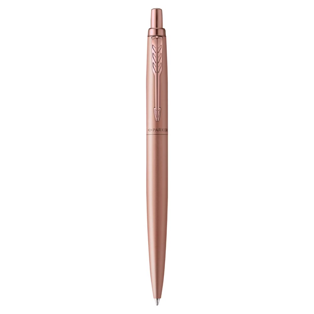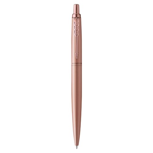 The iconic Jotter pen in a larger body, perfect for those who enjoy the comfort of a bigger pen. Features an eye-catching matte rose gold cap and barrel, paired with a matching shiny signature arrow clip. Streamlined and lightweight with a retractable design that opens with a satisfying click. Quinkflow ink technology for smoother, cleaner, and more consistent writing performance. Packaged in a distinctive Parker gift box. 2 Year Manufacturer's Warranty.