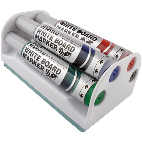Pentel MWL5 Whiteboard Marker Maxiflo Magnetic Eraser Set Pack of 4 Assorted Colours