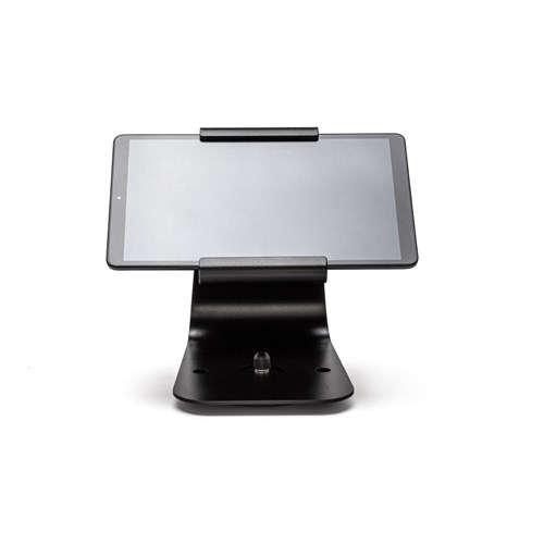 This stand is compatible with all iPads and tablets that have a width of 148 mm to 183 mm. It can be secured using 2 screws. If remaining portable, the silicone foot keeps it non-slip on countertops. It attaches magnetically to cash drawers. It's constructed from solid steel. The 180 degree swivel base allows you to rotate it without needing to lift or remove the tablet from the stand. The silicone keeps your tablet screen free from scratches, scuffs and dirt. The compact design comes in Classic Black. 1 Year Manufacturer's Warranty. Tablet is NOT included - Stand Only.