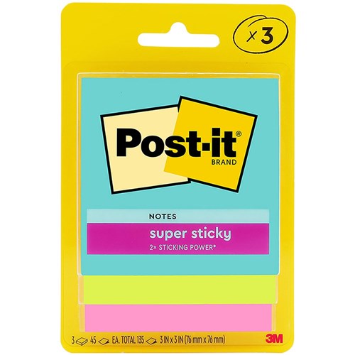 Perfect for leaving yourself and others reminders, memos, lists and more. Features a super sticky adhesive so you can leave them on a wide range of surface types, ensuring that they'll be seen. Stick and re-stick so your thoughts get noticed. 45 sheets per pad. Recyclable. Sourced from certified, renewable and responsibly managed forests.
