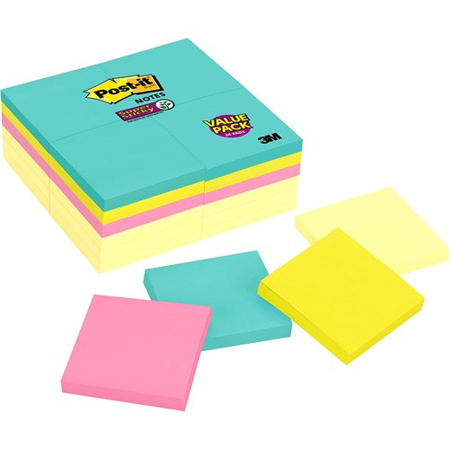 Super Sticky Post-it® Notes now come in great new colour palettes. Super Sticky Post-it® adhesive ensures that notes stick practically anywhere such as computer monitors, filing cabinets & furniture, and remain as easily removable as original Post-it® Notes. Bright colours make your thoughts/highlighted information stand out.