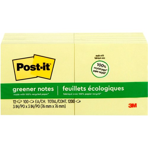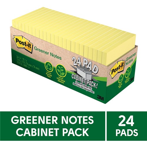 Post-It 654R-24CP-CY Notes 76x76mm Greener Recycled Cabinet Pack Yellow Pack of 24
