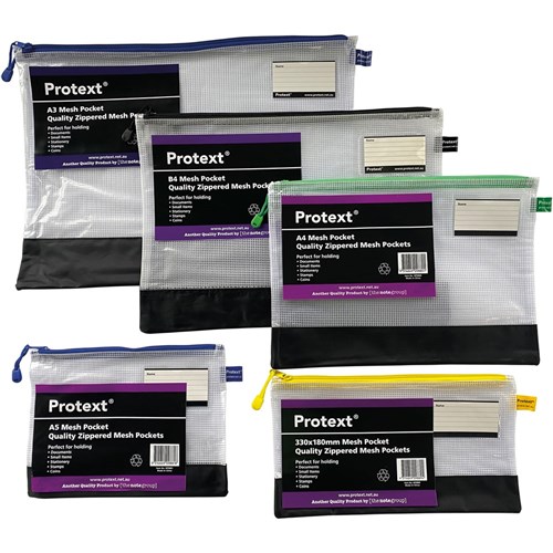 Mesh Pouch 330x175mm Black Nylon Reinforcing Bonus Note Pocket Mixed Colours