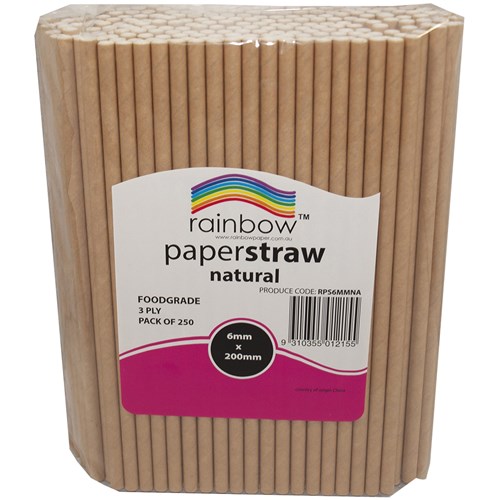 Rainbow 6mm Paper Straws Natural Pack Of 250