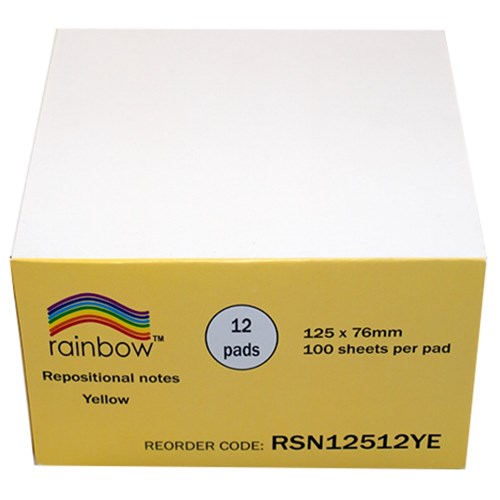 Rainbow Repositional Notes 76mm x 125mm Yellow Pack Of 12