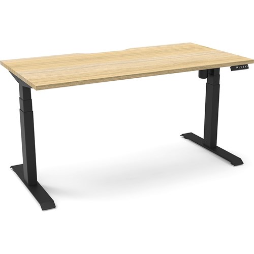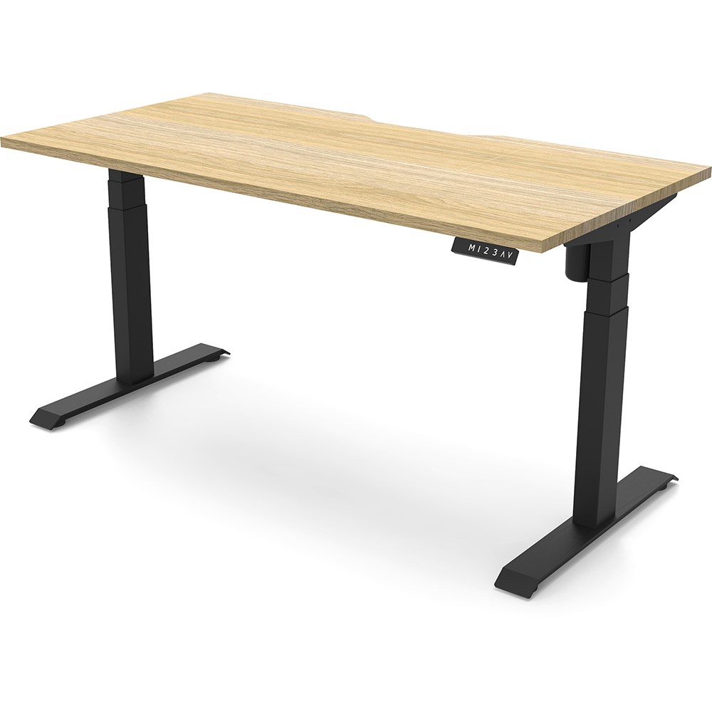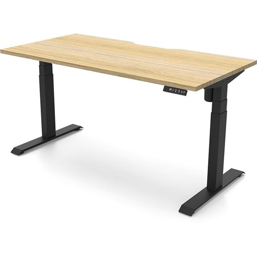 Natural Oak top with Black frame. Unit Dimension: 1500mm W x 750mm D x 620-1270mm H. E0 rated top. Powdercoat base. Digital control panel with 3 pre-set positions, LED display panel, keypad safety lock & reminder alarm setting. Anti-collision technology, noise emission of less than 50DB. Lifting capacity of 80kg with a max speed of 25mm per second. 700mm wide foot size with adjustable leveling feet. 10 Year Manufacturer's Warranty. Delivery, installation and assembly charges may apply to furniture. Please enquire to confirm.