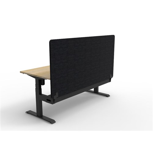 • Electric height adjustable single sided workstation with Natural Oak top and Black Satin frame, Black Eco screen and cable tray.