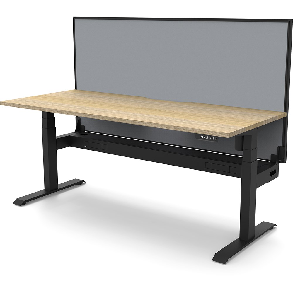 Natural Oak top with Black frame. Unit Dimension: 1200mm W x 750mm D x 1330mm H. 620-1270mm height range for desk. E0 rated top. Powdercoat base. Digital control panel with 3 pre-set positions, LED display panel, keypad safety lock & reminder alarm setting. Anti-collision technology, noise emission of less than 50DB. Lifting capacity of 80kg with a max speed of 25mm per second. 700mm wide foot size with adjustable leveling feet. Comes with 30mm thick privacy screens and cable tray for cable management. 10 Year Manufacturer's Warranty. Delivery, installation and assembly charges may apply to furniture. Please enquire to confirm.