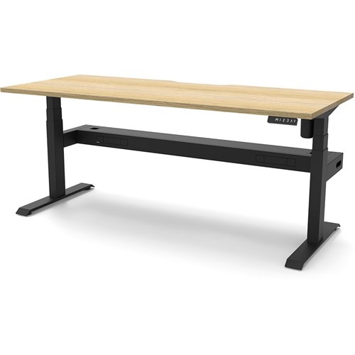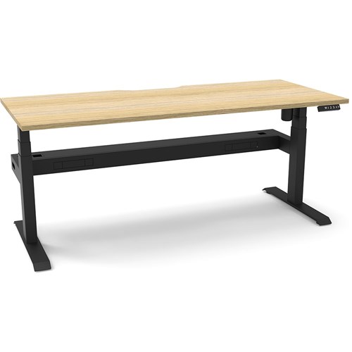 Natural Oak top with Black frame. Unit Dimension: 1800mm W x 750mm D x 620-1270mm H. Comes with cable tray for cable management. E0 rated top. Powdercoat base. Digital control panel with 3 pre-set positions, LED display panel, keypad safety lock & reminder alarm setting. Anti-collision technology, noise emission of less than 50DB. Lifting capacity of 80kg with a max speed of 25mm per second. 700mm wide foot size with adjustable leveling feet. 10 Year Manufacturer's Warranty. Delivery, installation and assembly charges may apply to furniture. Please enquire to confirm.