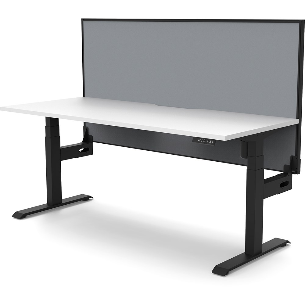 White top with Black frame. Unit Dimension: 1200mm W x 750mm D x 1330mm H. 620-1270mm height range for desk. E0 rated top. Powdercoat base. Digital control panel with 3 pre-set positions, LED display panel, keypad safety lock & reminder alarm setting. Anti-collision technology, noise emission of less than 50DB. Lifting capacity of 80kg with a max speed of 25mm per second. 700mm wide foot size with adjustable leveling feet. Comes with 30mm thick privacy screen. 10 Year Manufacturer's Warranty. Delivery, installation and assembly charges may apply to furniture. Please enquire to confirm.