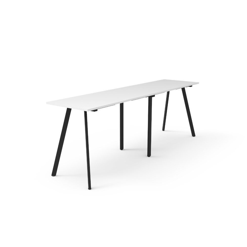 Natural White top black frame. Dimensions: 3000W x 750D x 1050mmH. 60mm x 30mm splayed leg underframe. Matches with the Eternity range. Dual cross bar for added stability. E1 enviroboard melamine worksurface. Adjustable levelling feet. 5 Year Manufacturer's Warranty. Delivery, installation and assembly charges may apply to furniture. Please enquire to confirm.