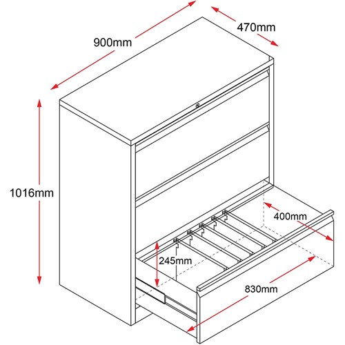 CATEGORY 1 WARNING: This product has a high risk of toppling over. Children have died from furniture tipover. ALWAYS secure this furniture with an anchor device. Go Lateral filing cabinets allow 2 rows of Foolscap files per drawer and fit seamlessly into a workstation layout. Riveted construction for extra strength. Anti tilt locking. Master key locking. Keyed alike locks optional extra. Heavy duty ball bearing runners. Weight limit of 60kgs per drawer. No assembly required. 10 Year Manufacturer's Warranty. Delivery, installation and assembly charges may apply to furniture. Please enquire to confirm.