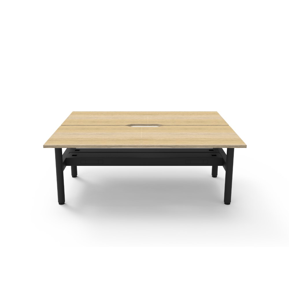 Natural Oak top Black Satin frame. Double sided workstation with cable tray. Overall Dimensions: 1800mW x 1500D x 730mmH. Per User Dimensions: 1800W x 750D x 730mmH. E0 rated 25mm top with rigid edging and 50mm diameter scallop cut out to rear. Powder coated underframe. Adjustable levelling feet. Can be customised with optional accessories like cable management solutions and privacy screens. 10 Year Manufacturer's Warranty. Delivery, installation and assembly charges may apply to furniture. Please enquire to confirm.