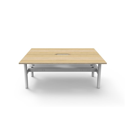 Rapidline Halo Static Back To Back Workstation + Cable Tray 2 Person 1800Wx730mmH Oak/Wht