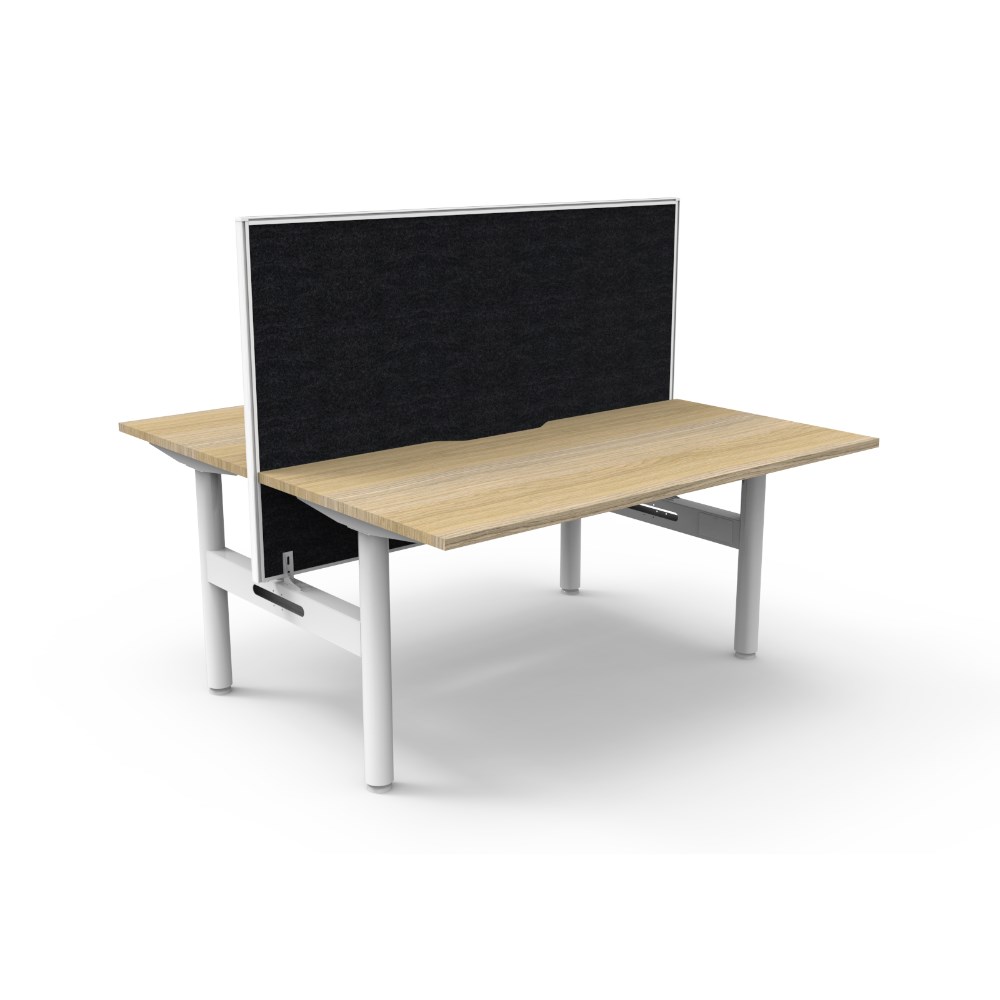 Natural Oak top White Satin frame. Double sided workstation with screen. Overall Dimensions: 1500W x 1500D x 1330mmH. Desk Per User Dimensions: 1500W x 750D x 730mmH. Height With Screen: 1330mm. E0 rated 25mm top with rigid edging and 50mm diameter scallop cut out to rear. Powder coated underframe. Adjustable levelling feet. Can be customised with optional accessories like cable management solutions and privacy screens. 10 Year Manufacturer's Warranty. Delivery, installation and assembly charges may apply to furniture. Please enquire to confirm.