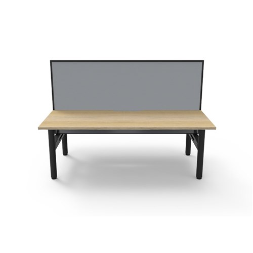 Natural Oak top Black Satin frame. Double sided workstation with screen. Overall Dimensions: 1800W x 1500D x 1330mmH. Desk Per User Dimensions: 1800W x 750D x 730mmH. Height With Screen: 1330mm. E0 rated 25mm top with rigid edging and 50mm diameter scallop cut out to rear. Powder coated underframe. Adjustable levelling feet. Can be customised with optional accessories like cable management solutions and privacy screens. 10 Year Manufacturer's Warranty. Delivery, installation and assembly charges may apply to furniture. Please enquire to confirm.